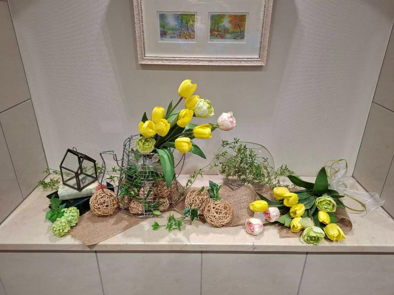最近、季節の装飾レンタルについてお問合せを数多くいただいております。四季を感じるディスプレイを承っております。ちなみに画像は株式会社宮城食糧会館様へのディスプレイ納品です。弊社の絵画は基本リトグラフやシルクスクリーン、ジクレーの版画がメインです。お花は全てアーティフィシャルフラワー※1(造花)なので、お客様でのお手入れは不要なので、お手を煩わせることなくお楽しみいただけます。お気軽にお問い合わせください。